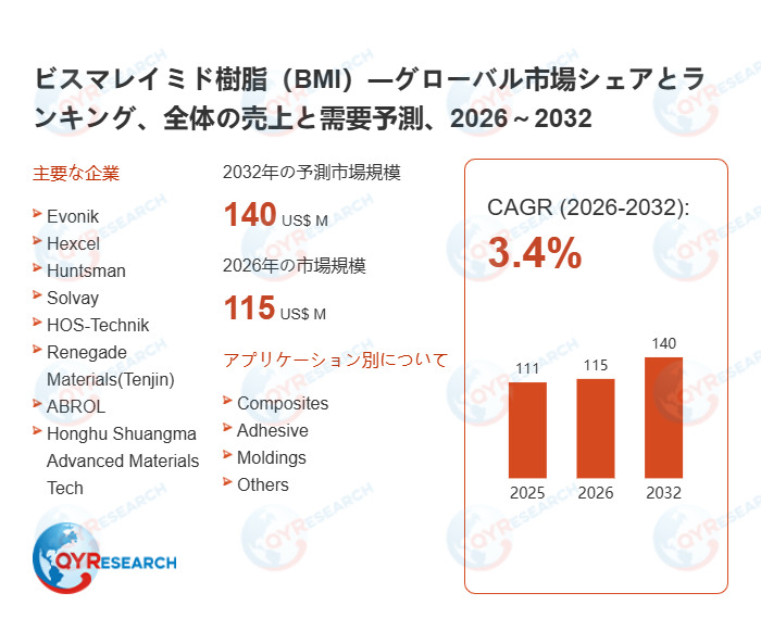 グローバルビスマレイミド樹脂(BMI)市場の成長分析:市場規模、浸透率、需要変動2026