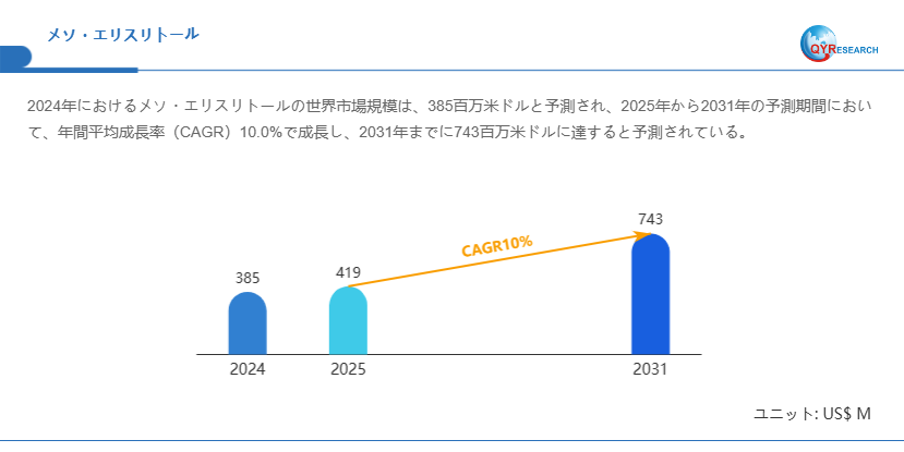 メソ・エリスリトール世界市場は2031年に743百万米ドルに成長見込み