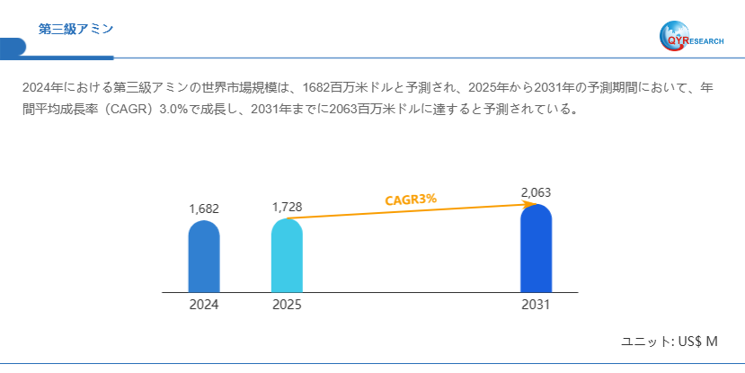 第三級アミン世界市場は2031年に2063百万米ドルに成長見込み